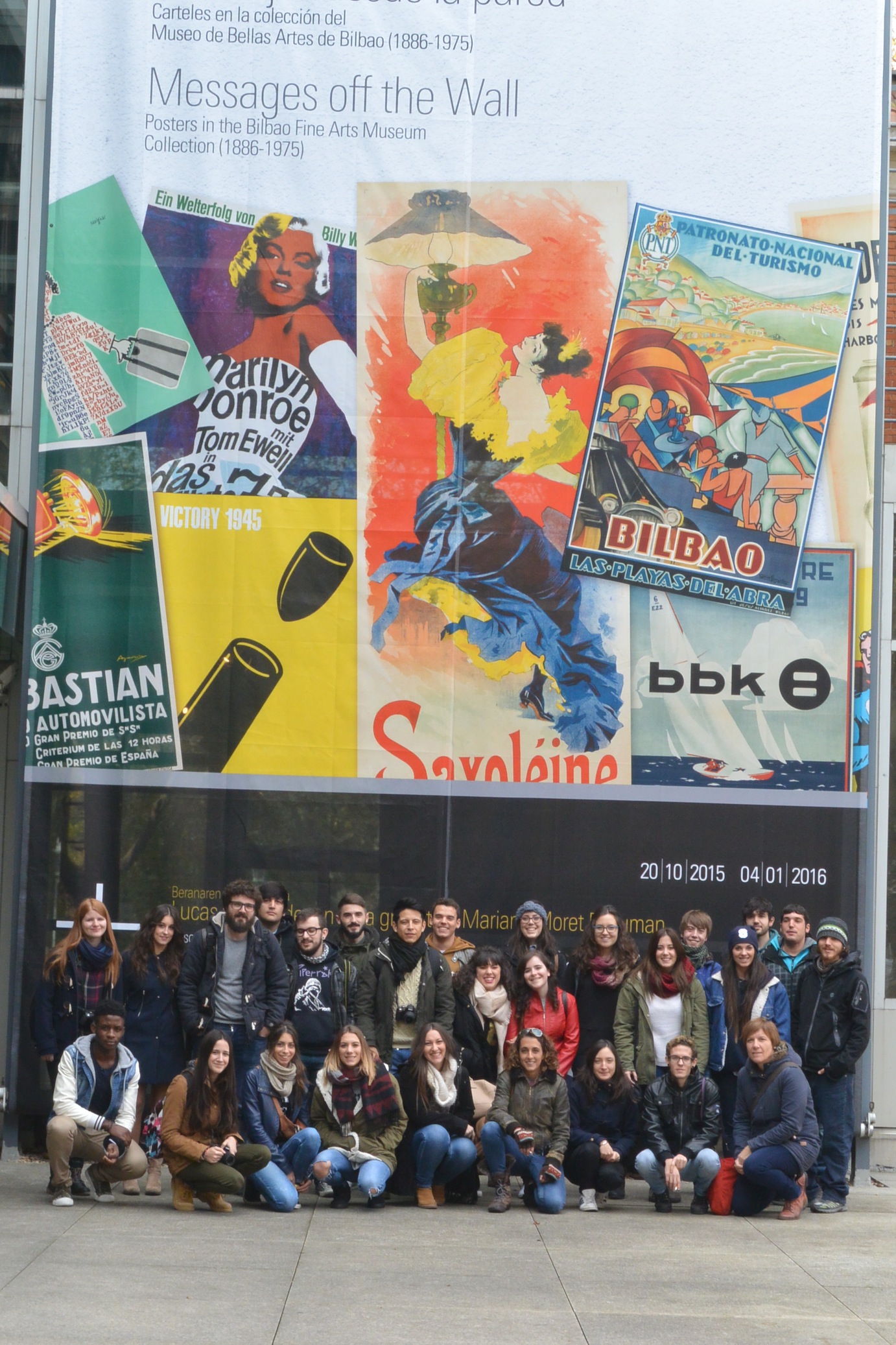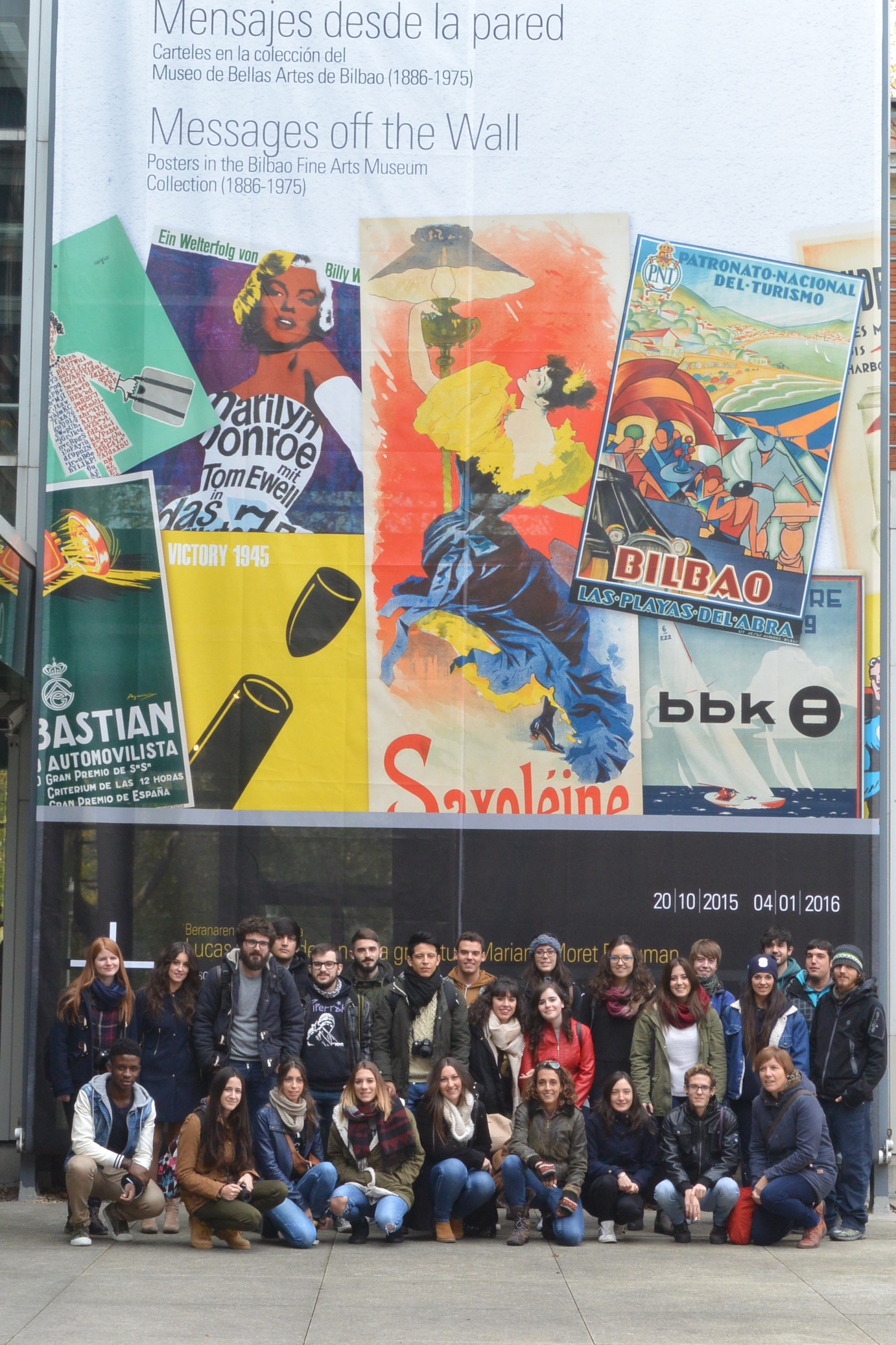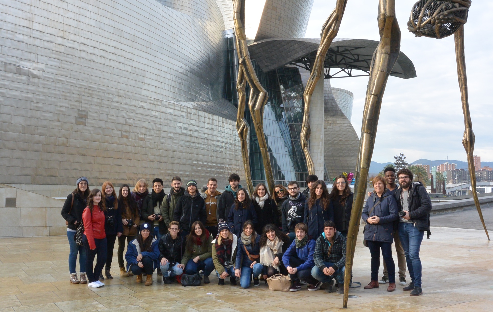 El pasado 2 de diciembre los alumnos de 2º del ciclo de Gráfica Publicitaria y los alumnos de 1º de EESS de Diseño Gráfico viajamos a Bilbao para visitar las exposición de carteles “Mensajes desde la pared” en el Museo de Bellas Artes de Bilbao. El día salió radiante, pudimos pasear por los alrededores del Museo Guggenheim, hacernos fotos con la Araña de Louise Bourgeois y disfrutar de las piezas del exterior del Museo.