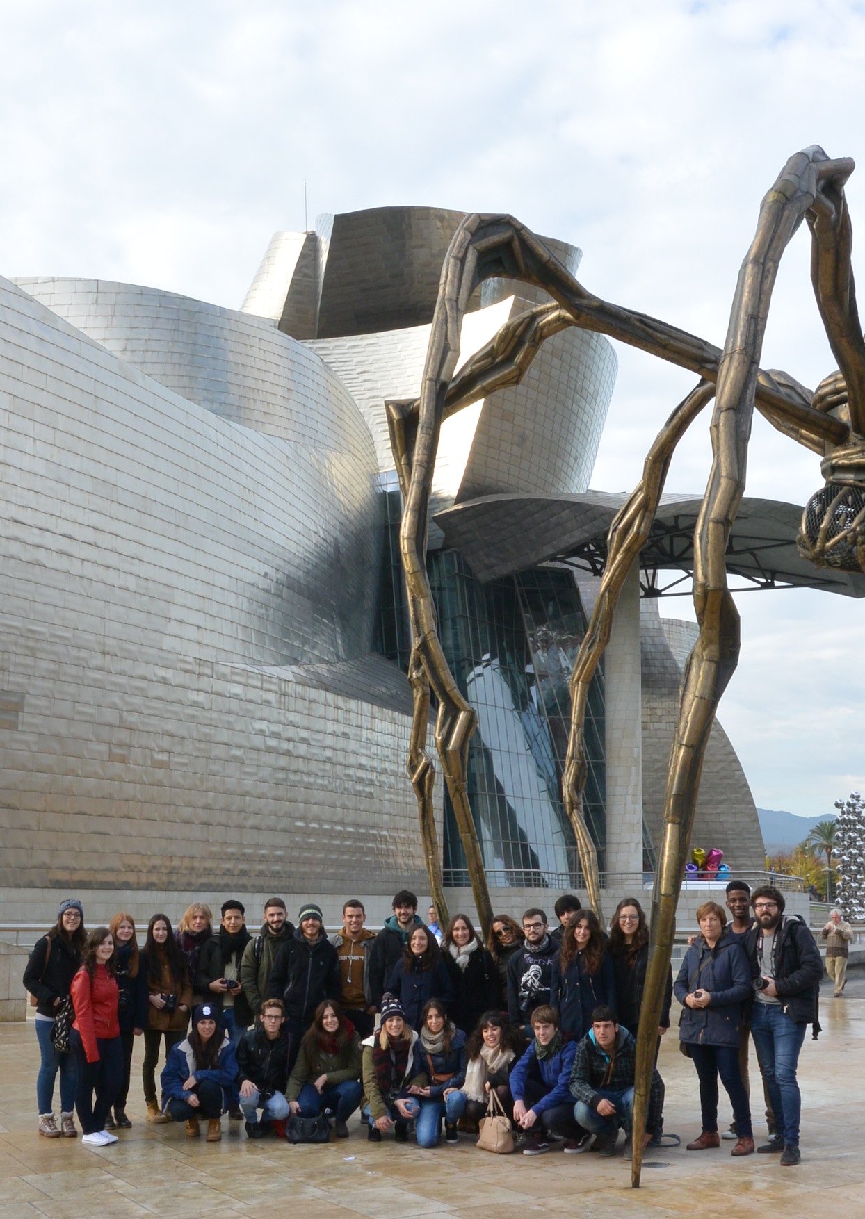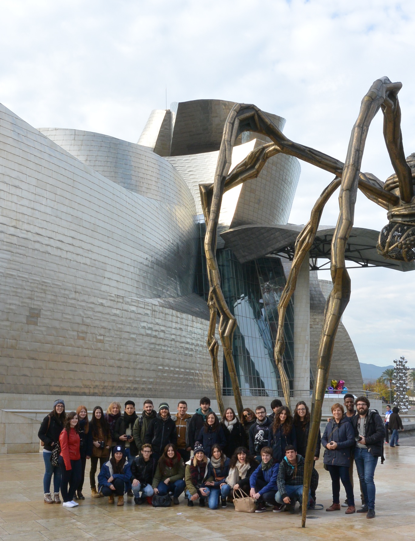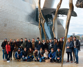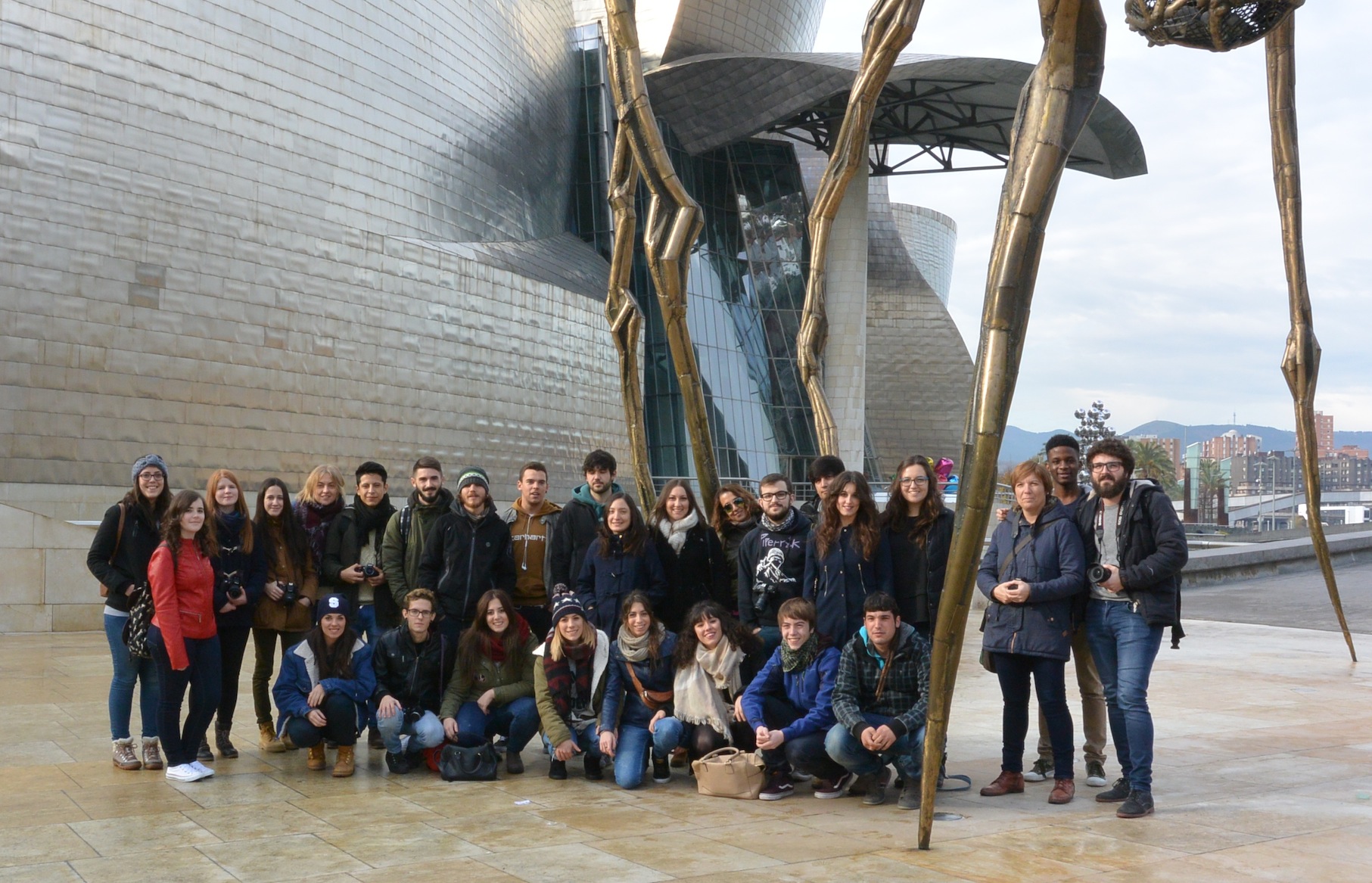 El pasado 2 de diciembre los alumnos de 2º del ciclo de Gráfica Publicitaria y los alumnos de 1º de EESS de Diseño Gráfico viajamos a Bilbao para visitar las exposición de carteles “Mensajes desde la pared” en el Museo de Bellas Artes de Bilbao. El día salió radiante, pudimos pasear por los alrededores del Museo Guggenheim, hacernos fotos con la Araña de Louise Bourgeois y disfrutar de las piezas del exterior del Museo.