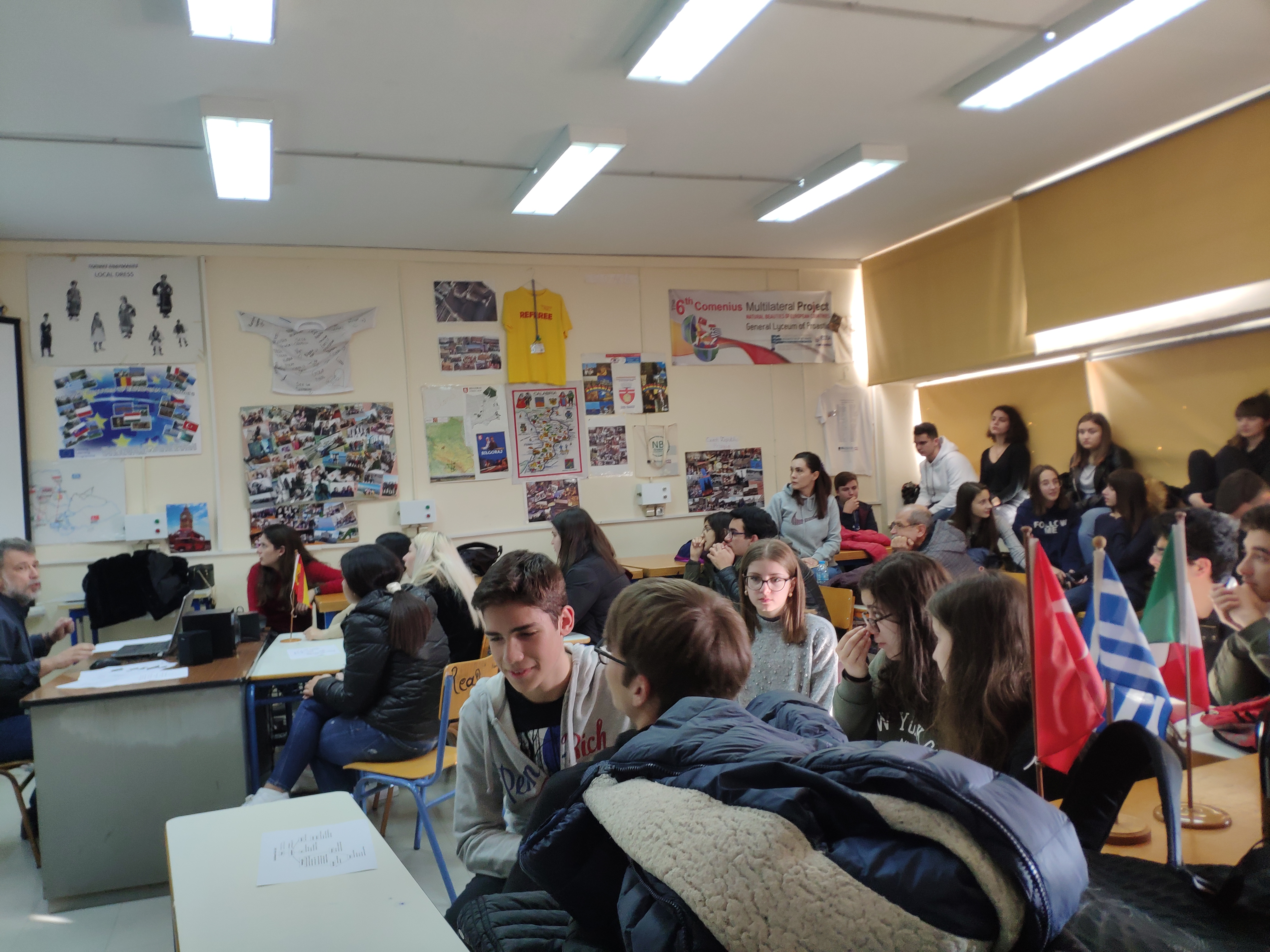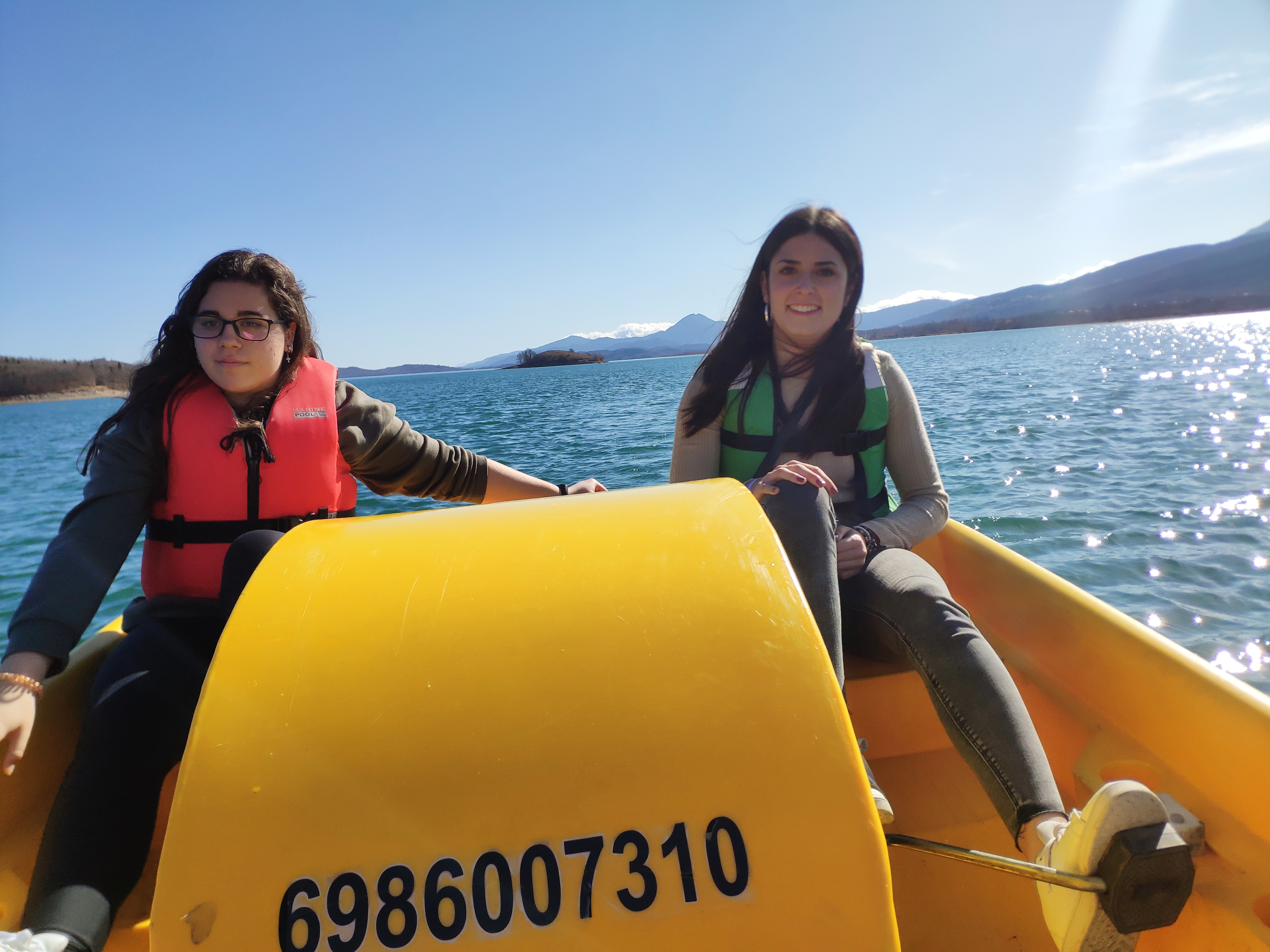 Ayer fue un día súper intenso. Comenzamos con un workshop en el instituto donde se mezclaban las matemáticas con la literatura. Después, nos dirigimos hacia el lago Plastíra en mitad de una cordillera griega para disfrutar de actividades deportivas y la naturaleza. Vivimos un par de anécdotas pero finalmente llegamos a buen puerto y pudimos comer una barbacoa deliciosa empañada un poco por el tiempo. Finalmente, siguiendo a Mark Twain, dimos un paseo por las montañas y concluimos el día con un buen café al calor de un hogar. Nuestras chicas volvieron a sus casas y cenaron con los demás participantes del programa en casa de una de las chicas griegas que participa en el programa.