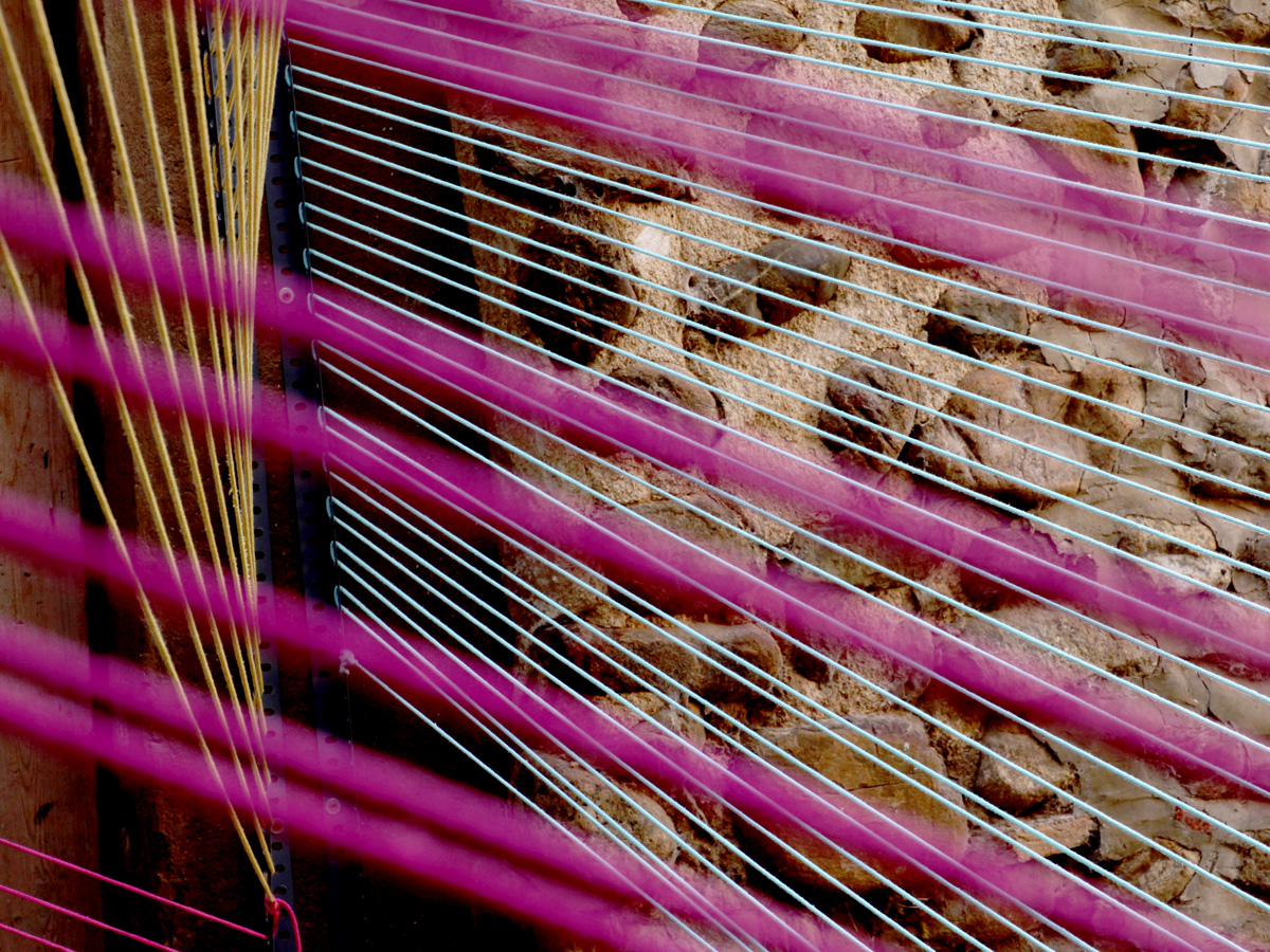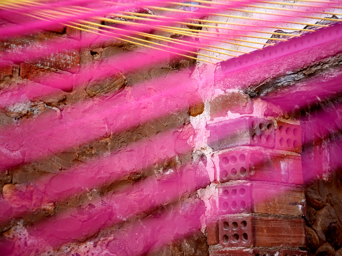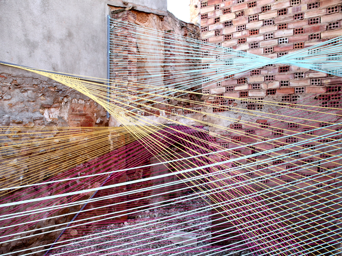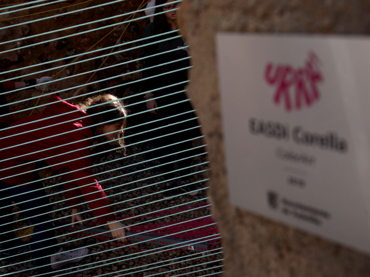 La instalación realizada, unas mallas regladas con los colores de URRA, pretende recuperar un espacio degradado y simbolizar con cada una de las líneas de color a la población rural, dando valor a estos espacios deprimidos que se encuentran en las poblaciones rurales debido al despoblamiento.