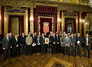 El Presidente del Gobierno de Navarra, Miguel Sanz Sesma, ha presidido la mañana del 1 de diciembre, en la sede del Ejecutivo foral el acto de “Homenaje a Navarra”, que se incluye en las actuaciones programadas con motivo de la celebración, el próximo jueves 3 de diciembre, del Día de Navarra 2009. En esta ocasión, el homenaje ha tenido como protagonista a la comunidad educativa y, más en concreto, a la Formación Profesional, a cuyos representantes se les ha hecho entrega de un escudo de Navarra.