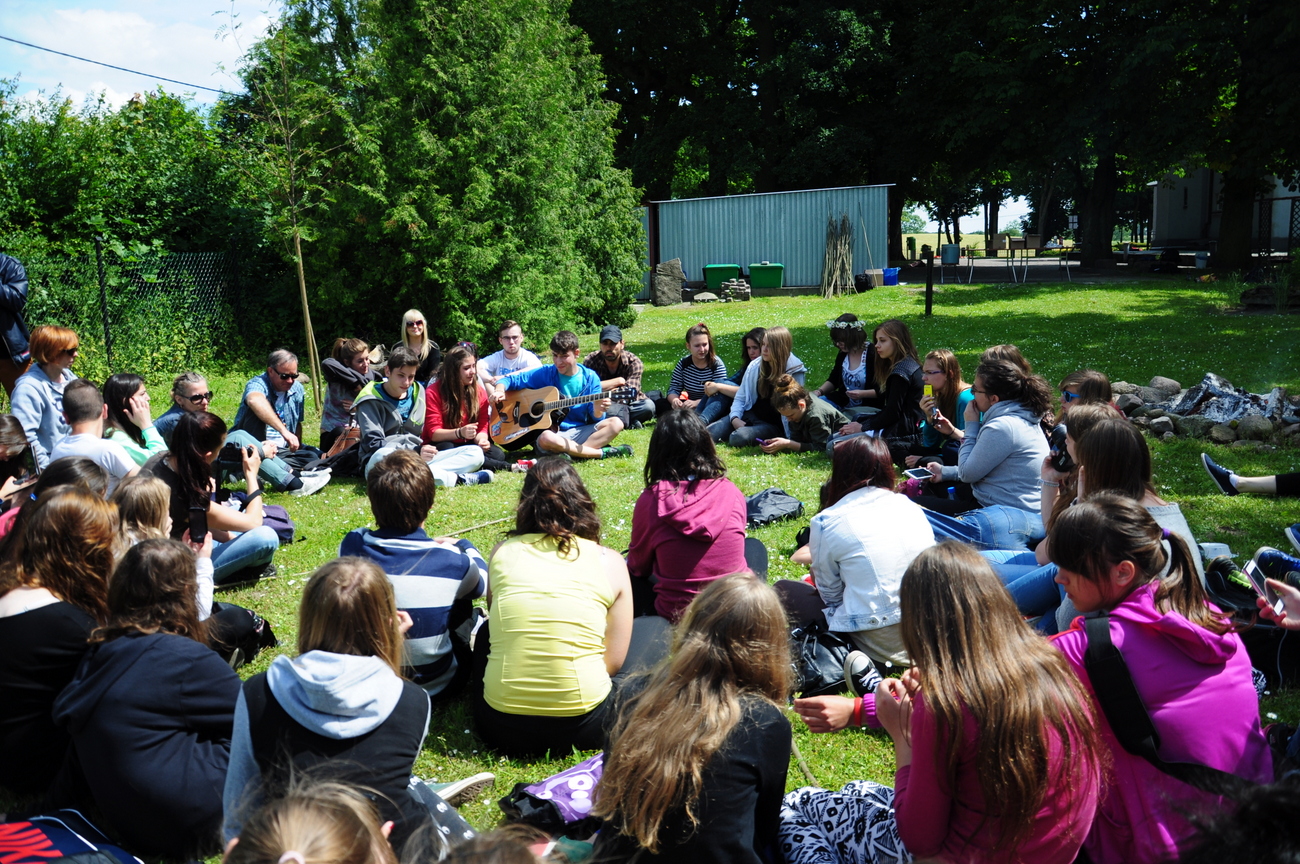 La escuela se volcó, todos los profesores participaban en darnos la mejor de las bienvenidas y el mejor de los recibimientos, desde el director pasando por los profesores de la escuela, que se volcaron en la semana que duró el encuentro, las familias, los alumnos, incluso la Universidad Nicolás Copernico de Toruń . Todos hicieron que nuestra estancia fuese de lo mejor. Las actividades preparadas para nosotros nos llevaron a conocer parte del Camino de Santiago que pasa por Szafarnia, donde preside el pueblo la Mansión-Museo en la que Chopin pasó algunos de los veranos de juventud, a la vez que disfrutamos de un concierto de piezas de Chopin ofrecido en nuestro honor en la propia Mansión-Museo. Por supuesto que disfrutamos de una actividad muy arraigada entre los polacos cuando hace buen tiempo, comimos salchichas directamente asadas en el fuego. Disfrutamos del cierre escolar del colegio, asistimos a las entregas de premios escolares presididas por las autoridades locales y el rector de la Universidad Nicolás Copernico. Hicimos turismo, mucho turismo, visitando muestras de Arte, visitando la propia Universidad, conocimos Toruń (ciudad hermanada con Pamplona), Varsovia y Gdansk, y por supuesto Golub-Dobrzyń.