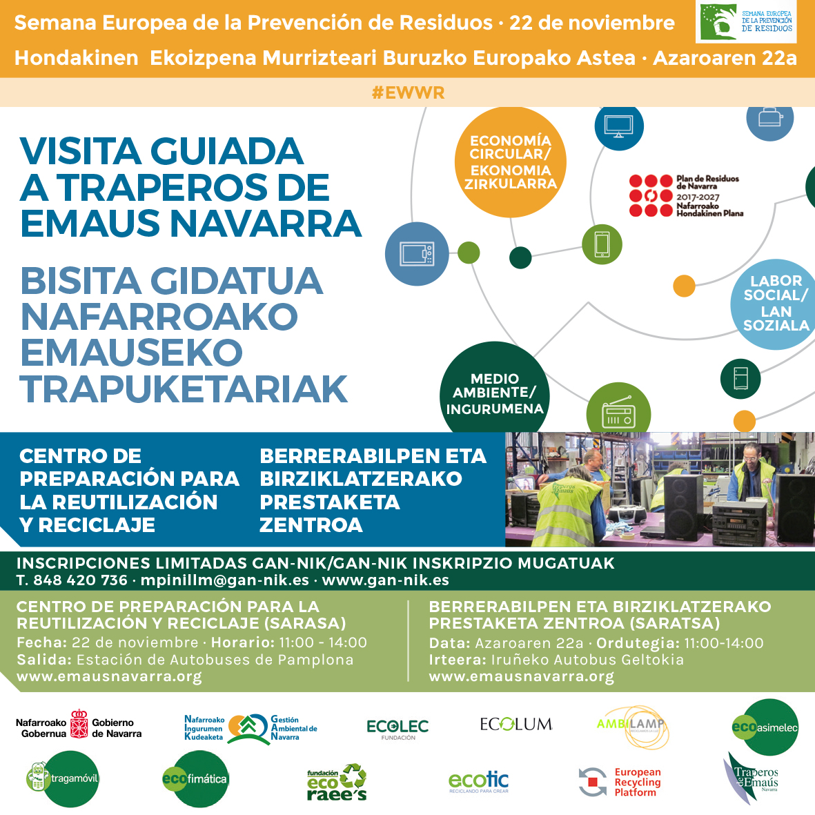 En esta visita, con la intención de divulgar y sensibilizar a la ciudadanía y enseñar las posibilidades de reutilización y reciclaje existentes para los Residuos de Aparatos Eléctricos y Electrónicos, conocidos como RAEE, se mostraron los recursos existentes en Navarra para el tratamiento y la recuperación de los RAEE que generamos.